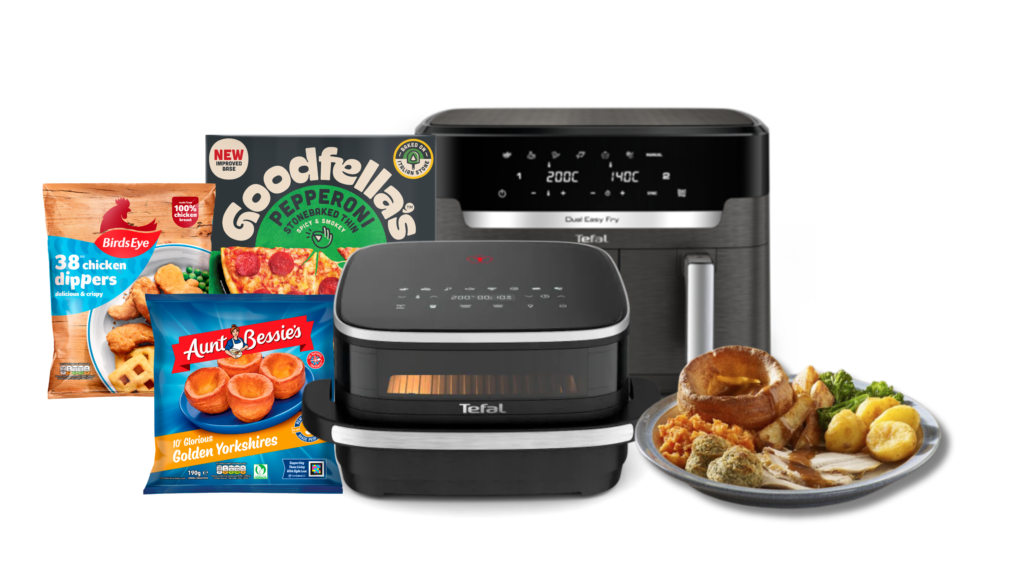 Share LinkedinFacebookTwitterE-mail Brands Birds Eye and Tefal Come Together to Deliver Smart Cooking for Modern Mealtimes Oct 08, 2025 Birds Eye announces new partnership with renowned kitchen & home appliances company, Tefal, aimed at helping UK households create delicious, time-saving meals with ease. The collaboration spans the Birds Eye portfolio of brands: Birds Eye, Aunt Bessie’s and Goodfella’s, and Tefal’s range of air fryers, including the Tefal Easy Fry Pizza - the only air fryer designed specifically for a full-size pizza, and their Dual XXL Air Fryer - the UK’s largest dual air fryer[1]. Launching with a spotlight on the roast dinner – the two brands demonstrate how an Aunt Bessie’s Roast Dinner with all the trimmings can be ready in just 70 minutes[2] using the Tefal Easy Fry Dual XXL air fryer. WOKING, England - October 8, 2025 - Today, Birds Eye, the UK's leading frozen food brand, and Tefal have announced a new strategic partnership, united by a shared mission to create ‘A Better Everyday’ for UK households. By combining the goodness of Birds Eye’s trusted frozen food brands with Tefal’s smart, energy-saving cooking appliances, the two companies are working together to make everyday life easier, more enjoyable, and more delicious. Launching with a spotlight on the roast dinner, the brands show how an Aunt Bessie’s Roast Dinner with all the trimmings can be ready in just 70 minutes using the Tefal Easy Fry Dual XXL Air Fryer – the dual largest air fryer available in the UK¹. The two companies will use in-store and online point-of-sale material, alongside social media content and giveaways, to celebrate the partnership and drive awareness of the benefits of quality frozen food and air frying. With over half of UK households now using an air fryer,[3] the partnership highlights how Birds Eye’s iconic portfolio of products and brands can be cooked quickly and efficiently using Tefal’s air fryers which offer time-saving[4] and energy-saving benefits[5], helping families cut back on costs while still enjoying varied and tasty meals. Whether it’s a comforting roast, a quick midweek meal, or even a full pizza, the collaboration is about helping consumers unlock the full potential of their food choices and appliances to show that mealtimes can be simple, delicious, and stress-free. Claire Sutton, Marketing Director at Birds Eye commented: “We know that many households are facing real challenges when it comes to mealtimes, from a lack of time and rising costs, to simply not knowing what to cook and lacking inspiration. Frozen food offers a brilliant solution - it can be nutritious, accessible, and is easily portioned which helps reduce food waste. By teaming up with Tefal, we’re excited to show just how easy it is to enjoy the goodness of frozen food. Whether it’s a comforting roast or a quick midweek meal, and even a full pizza, this partnership is about making better food choices simple and achievable, and more delicious for everyone.” Patrick Lucereau, Marketing Director at Tefal UK adds: “With air fryers now the UK’s third most-used appliance, it’s clear that smart cooking is becoming a staple in modern kitchens and our partnership with Birds Eye is about helping consumers unlock the full potential of their appliances. By using quality frozen ingredients to create meals that are quick, tasty and balanced and providing an air fryer which is matched to their unique needs, we’re making mealtimes easier and better for families across the UK.” -ENDS- For further information on Birds Eye products and on the partnership, please contact the Birds Eye press office at: group.birdseye@cirkle.com For further information on Tefal products contact tefal@stripecommunications.com About Birds Eye Birds Eye, owned by Nomad Foods, is the UK's no.1 branded frozen food company and is comprised of the Birds Eye, Goodfella's and Aunt Bessie's brands. Birds Eye launched over 75 years ago and has been championing accessible, healthy, sustainable and delicious frozen food ever since. We are proud of our heritage as we continue to make mealtimes better with the goodness of frozen food. Full product list and details are available at www.birdseye.co.uk/our-brands About Tefal Proudly supporting households for almost 70 years, Tefal® is your day-to-day facilitator, committed to making everyday life easier with clever, practical solutions designed around real consumer needs. Whether it’s for cooking, taking care of your linen, or your home, Tefal’s® life-proof innovations make you more available for the family moments that really matter, with products that guarantee the right results in less time and with less effort, making a positive difference in the home by being smarter together. For more information, please visit: www.tefal.co.uk Editor's note: [1] VS UK’s Top 20 Competitor brands [2] Using Aunt Bessie’s Chicken Joint [3] The Good Food Nation Study, 2024. 2,003 UK adults, 58% now use an air fryer +12% YOY. [4] 40% faster cooking with less energy than a conventional oven; external test cooking 1000g of frozen French fries, compared to a Tefal convection oven. [5] Up to 60% energy saving with air fryers by Tefal vs conventional oven Energy Class A. Tests conducted in 2022 on frozen fries Share LinkedinFacebookTwitterE-mail